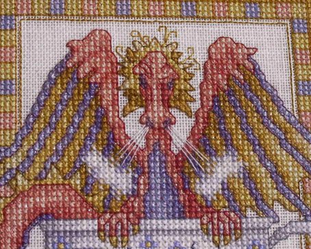 Prism thread to highlight the dragon. Up close, he has a very light sparkle.